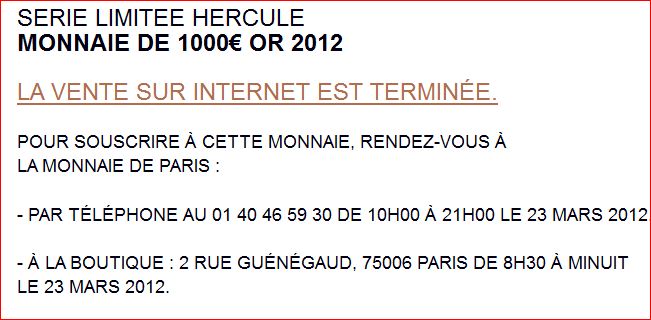 [Commémo] 1 000 € - Or - Hercule - 2012
