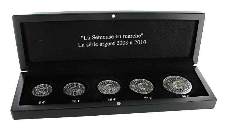 Voyant qu'il n'y avait pas de messages sur le sujet, je vous présente le coffret "La Semeuse en marche" série argent 2008 à 2010 :