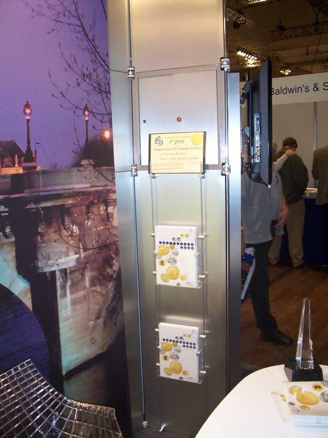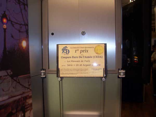 CEDA 2008 : Monnaie de Paris Courrier de Christophe BEAUX Président-Directeur Général de la Monnaie de Paris, en réponse au courrier décernant le 1er prix du CEDA 2008 à la Monnaie de Paris. Le stand de la Monnaie de Paris au Salon International de Numismatique, à Berlin, en février 2009 Diplôme du prix CEDA 2008 sur le stand de la Monnaie de Paris Christophe BEAUX, Président-Directeur Général de la Monnaie de Paris, entouré par Fabrice ROLLAND, Vice-président des AD€ (à gauche) et Olivier FOURNIER, Président des AD€ (à droite). |