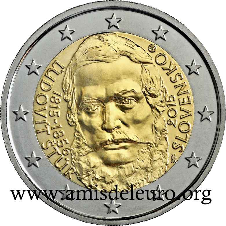- 2 euro : buste du prince Pribina, le premier roi connu de l'ancienne Nitra |