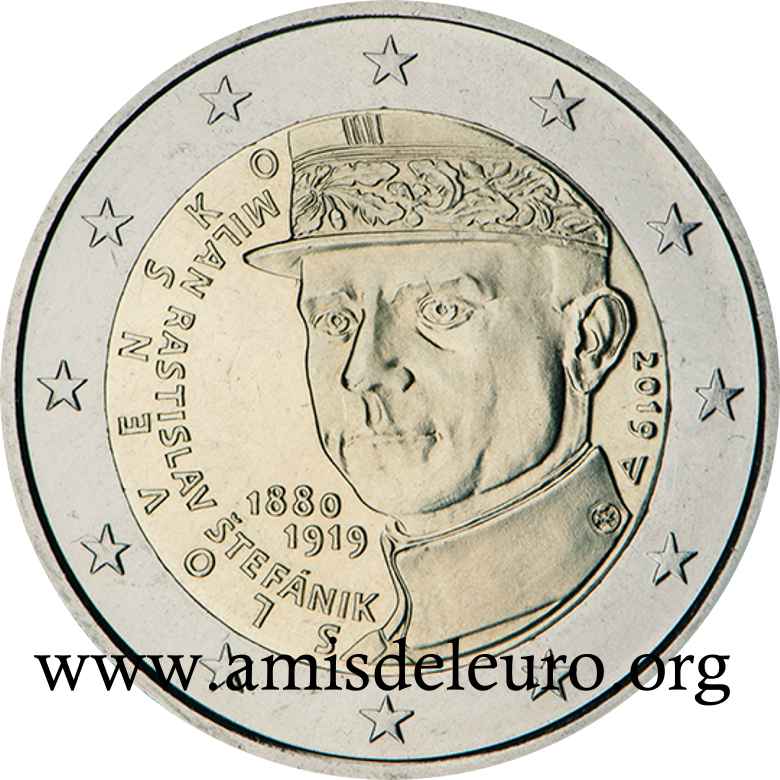 - 1 euro : général Milan Rastislav Stefanik, homme d'état et scientifique, l'un des trois fondateurs de la République tchécoslovaque en 1918