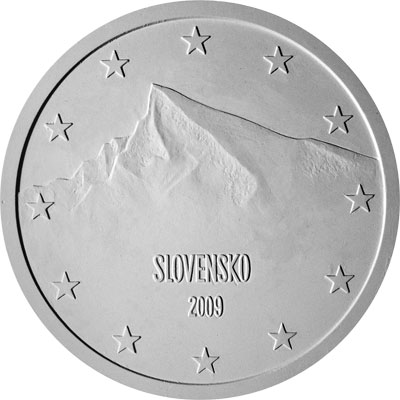 - 1, 2 et 5 cent : la crête Krivan de la chaîne des Tatras, site d’importance pour l’éveil de la conscience nationale slovaque. SLOVENSKO en bas du motif