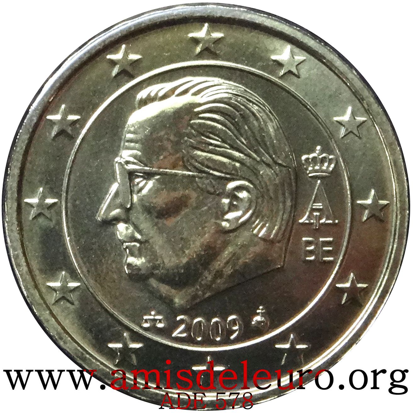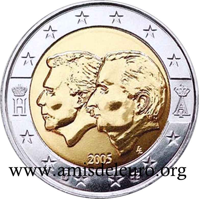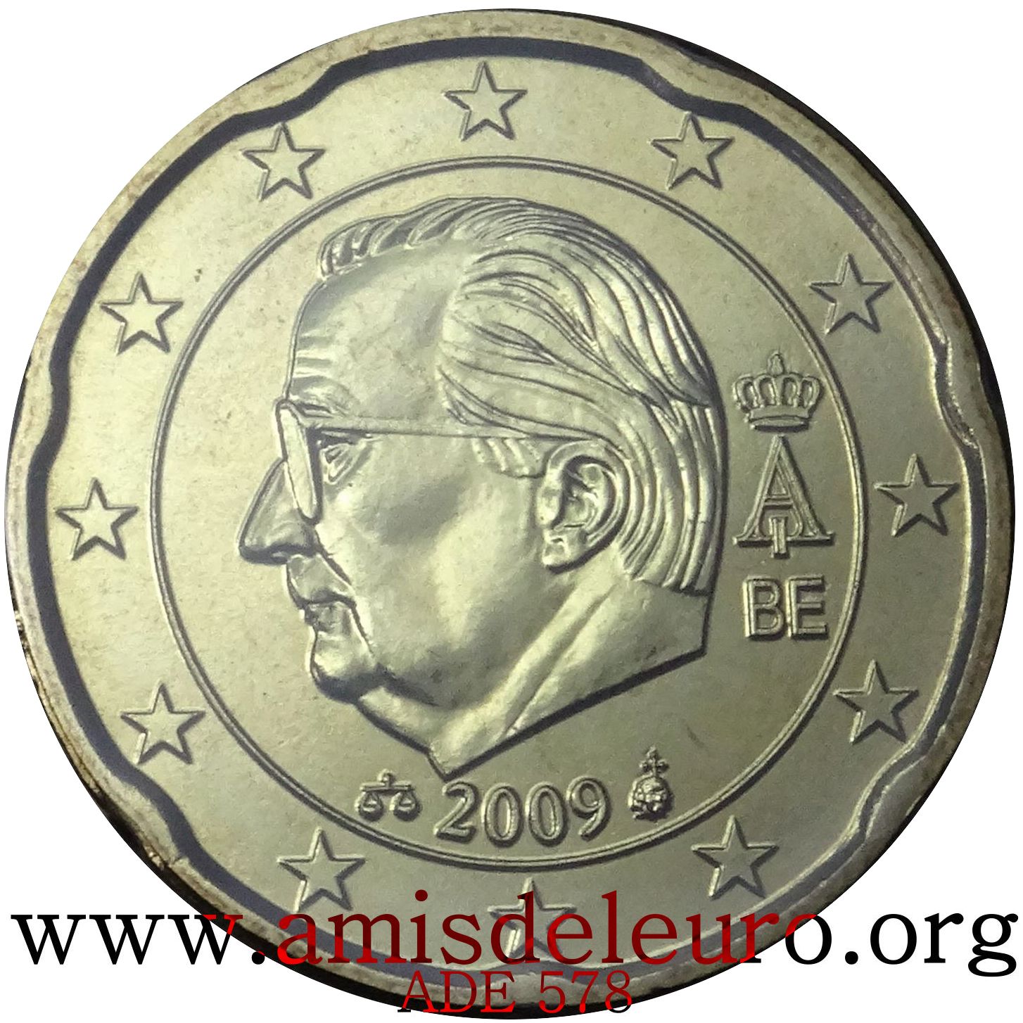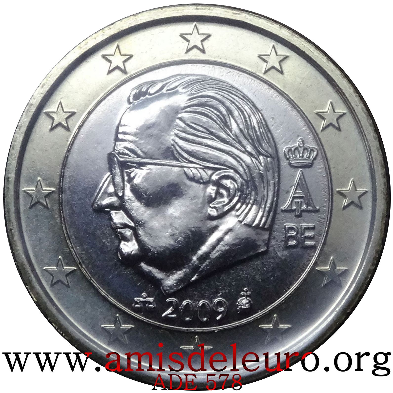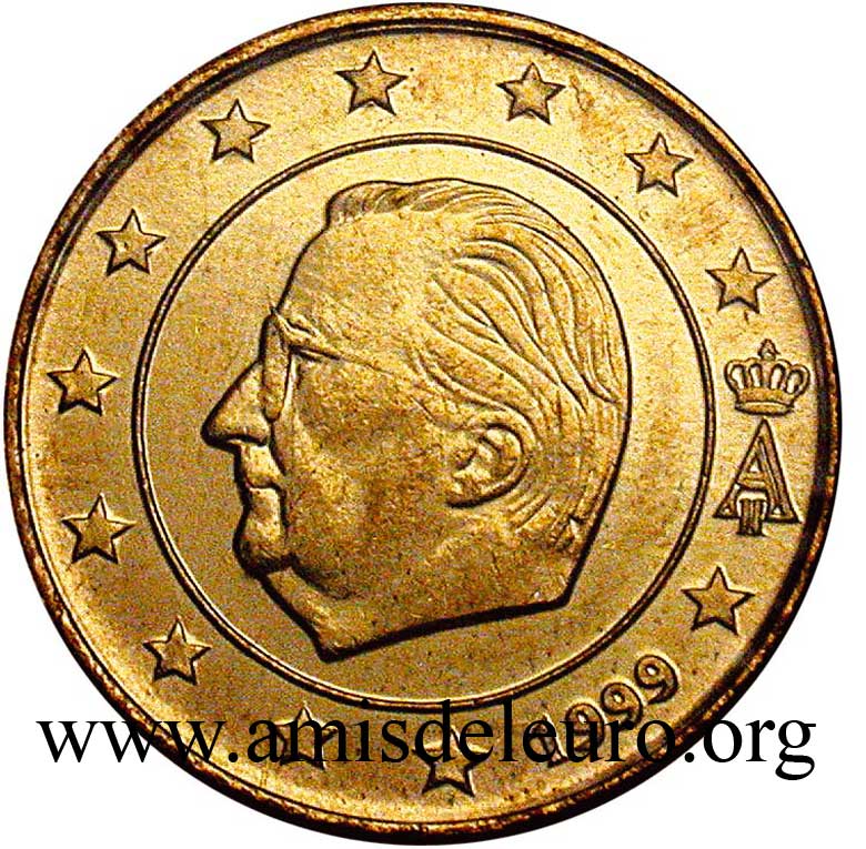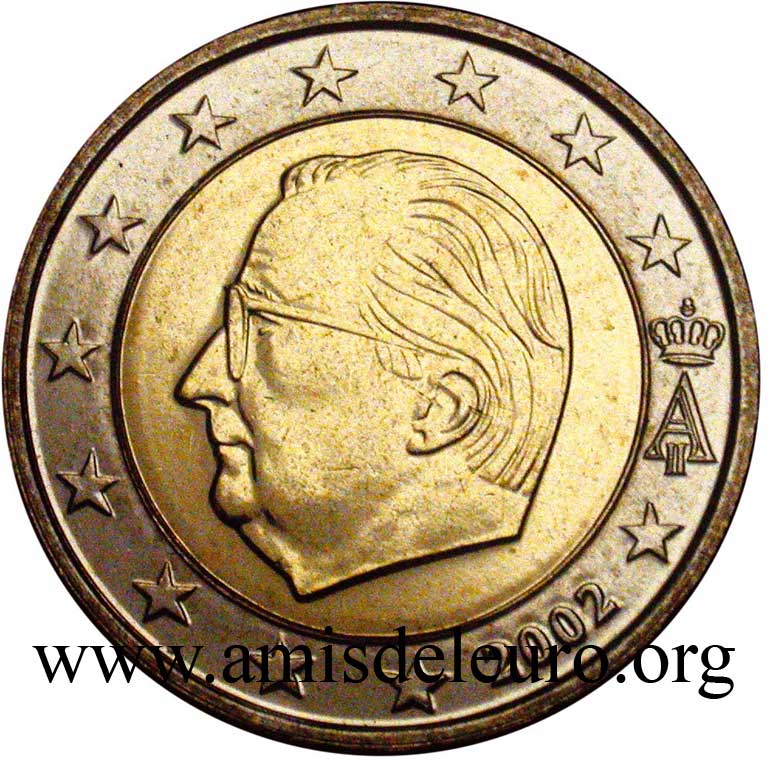 - En 2008, pour que figurent sur les pièces une identification claire du pays (soit libellé complet du pays soit une abréviation de celui-ci) et pour que les 12 étoiles soient disposées de la même façon que sur le drapeau européen. La Monnaie Royale profita de ces changements pour ajouter ses deux poinçons et modifier légèrement le profil du roi Albert II. Désormais, on trouvera sur les séries belges en euros, en plus de ces deux poinçons, les initiales BE. Tous ces ajouts ont été placés ainsi que le millésime et le A couronné à l'intérieur de la partie centrale, les étoiles occupant désormais toute la couronne. Il faut néanmoins noter que les deux poinçons figurent sur les pièces commémoratives depuis quelque temps déjà y compris sur les 2 EUR commémoratives, et ce depuis la première en 2005.