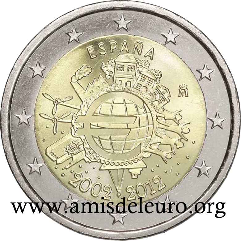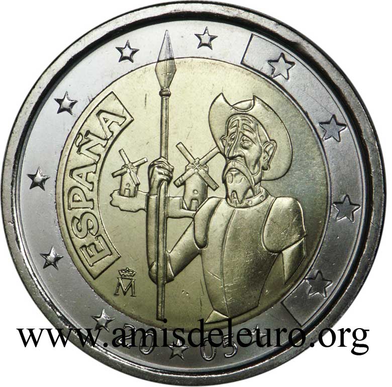 Les 2 euro commémoratives En 2005 paraît la première 2 euro commémorative espagnole, sur le thème de "Don Quichotte", il aura fallu attendre 2010 pour voir apparaître la seconde pièce commémorative à l'initiative de l'Espagne, mais cela marque le début d'une longue série sur le thème du patrimoine mondial de l'Unesco.
