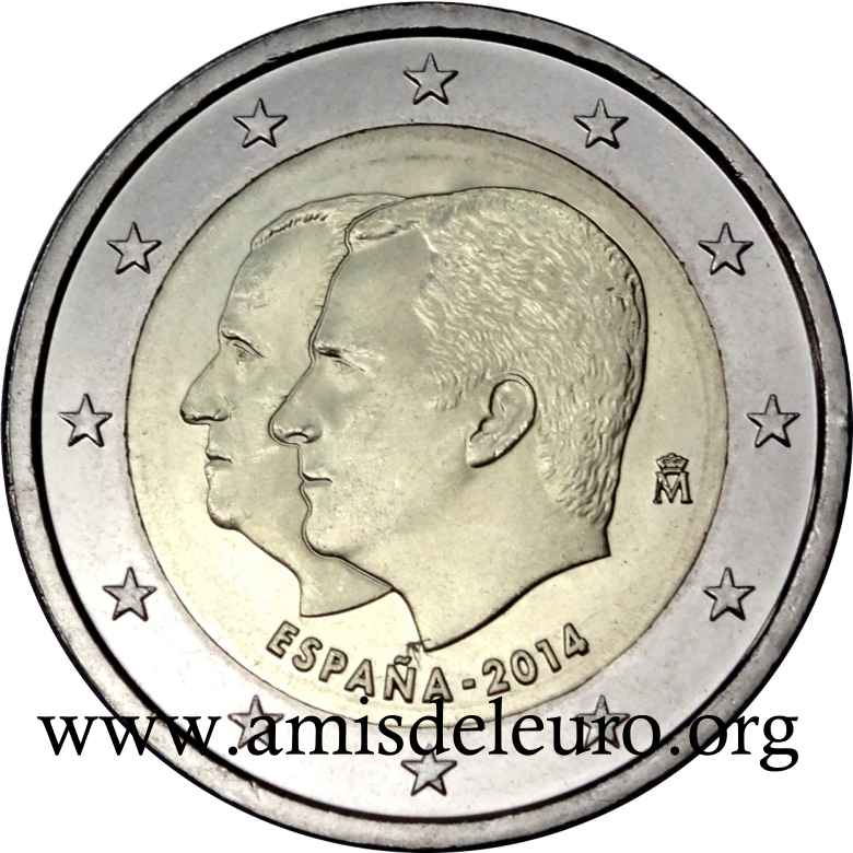 Courant juillet 2007, nous apprenons qu'une décision politique pourrait bien être à l'origine de nouvelles faces pour les monnaies espagnoles. En effet, le groupe parlementaire socialiste a fait une proposition de loi visant à modifier les faces nationales des pièces de 10 à 50 c afin de faire apparaître autant de portraits féminins que masculins sur les pièces espagnoles, et ce d'un point de vue égalitaire. Il a donc été proposé qu'apparaissent le portrait de Campoamor Claire, une femme très importante de la Seconde République espagnole qui a lutté dans le but d'obtenir le droit de vote pour les femmes en Espagne il y a 75 ans. Cette décision semble tombée à l'eau puisque depuis, le 2 juin 2014, le roi Juan Carlos Ie a abdiqué, et c'est son fils Felipe VI qui reprend la couronne. À cette occasion, une seconde pièce de 2 EUR a été émise cette année-là et en 2015 les deux plus fortes faciales se verront tout naturellement gravées avec le profil du nouveau roi. Deux faces nationales évoluent : -1 et 2 EUR : le roi Felipe VI