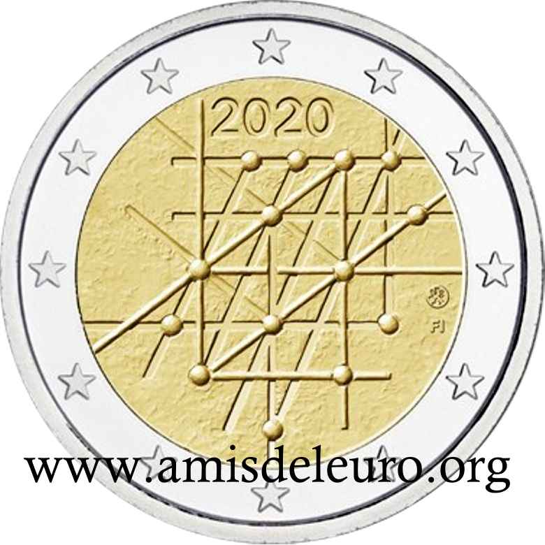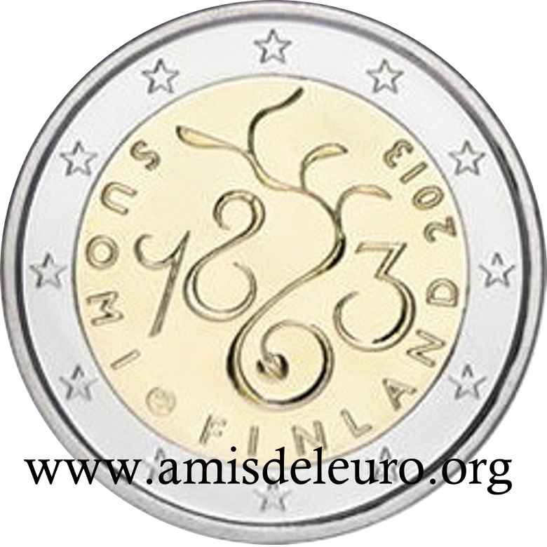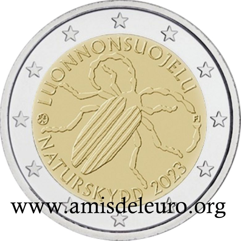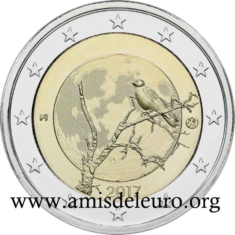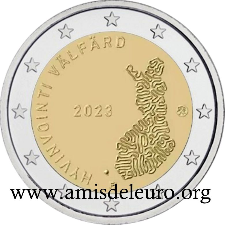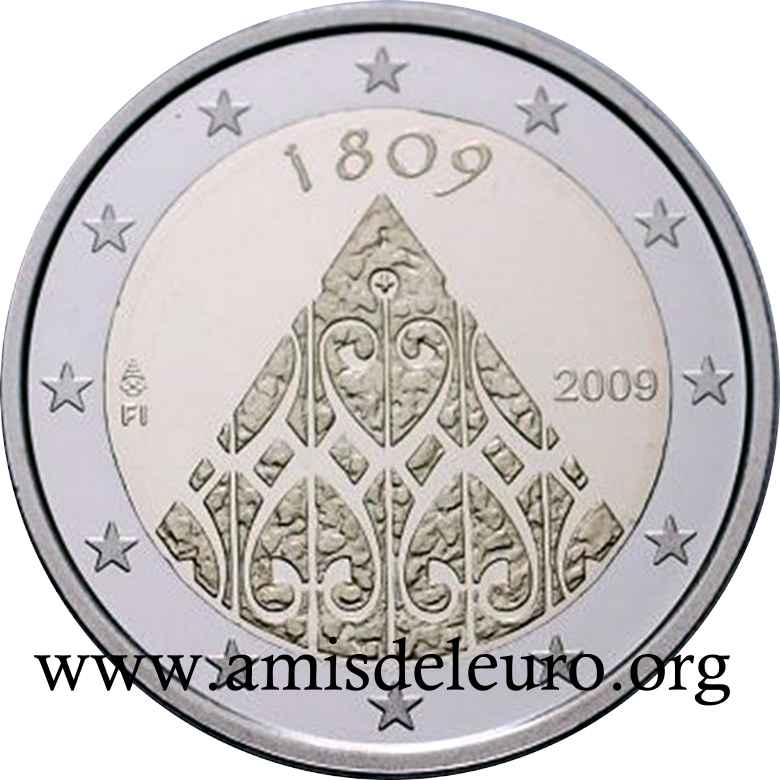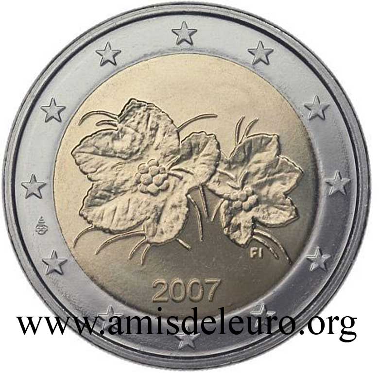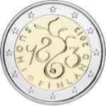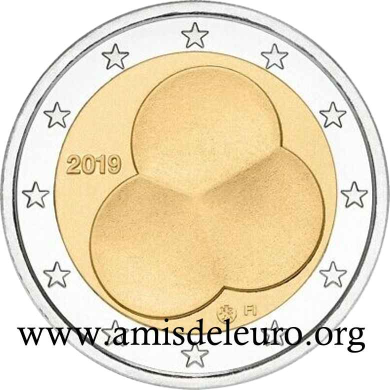 - 1 à 50 cent : le lion héraldique qui illustre la fierté de l’indépendance enfin conquise. Le lion couronné sur un sabre est très ancien et remonte aux nombreuses guerres que les Finlandais durent mener : le sabre sur lequel le lion finlandais marche est un sabre russe... A compter du millésime 2007, la Finlande a modifié ses faces nationales afin de respecter les recommendations figurant dans le Journal Officiel de la commission Européenne n°2005/491/CE qui stipule que l'on doit trouver sur les pièces une identification claire du pays (soit libellé complet du pays soit ses initiales). La Finlande a donc choisi d'ajouter les initiales FI, et au passage le poinçon de la Rahapaja Oy (). Elle a également profité pour passer à la nouvelle face commune qui n'était obligatoire qu'à partir de 2008. Bizarrement, l'initiale M du maitre Raimo Makkonen, sous la poignée du sabre a disparu. Petite anecdote, le poinçon de la Rahapaja Oy En 2011 le poinçon de la Rahapaja Oy Les 2 euro commémoratives La Finlande a émis au moins une pièce commémorative de 2 EUR chaque année depuis 2004, dont la plupart sont très belles. En décembre 2019, le ministère des Finances a conclu un contrat avec Oy Nordic Moneta Ab pour la production et la vente de pièces commémoratives finlandaises et pour la vente de séries de pièces finlandaises et de pièces spéciales de deux euros. Le marché a été attribué sur la base d'un appel d'offres. Le contrat entre le ministère des Finances et Oy Nordic Moneta Ab se déroule du 20 décembre 2019 au 31 décembre 2022. Le contrat comprend une option d'extension pour 2023 et 2024. La Finlande émet deux coffrets BU chaque année, dont un avec la commémorative. De plus, une production significative de non circulantes est émise.