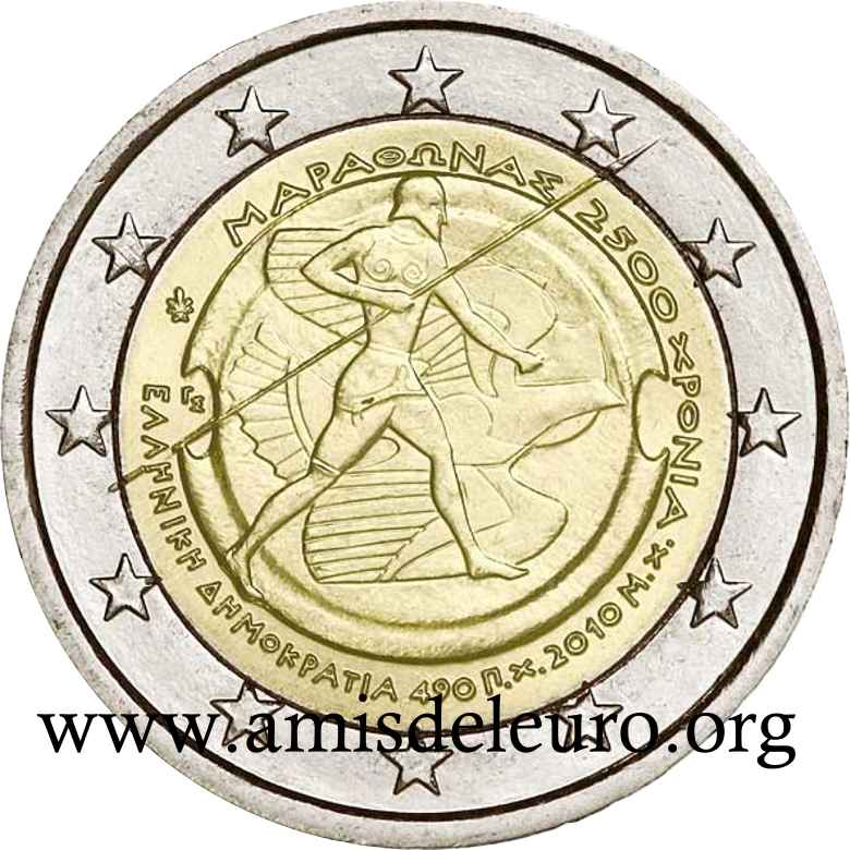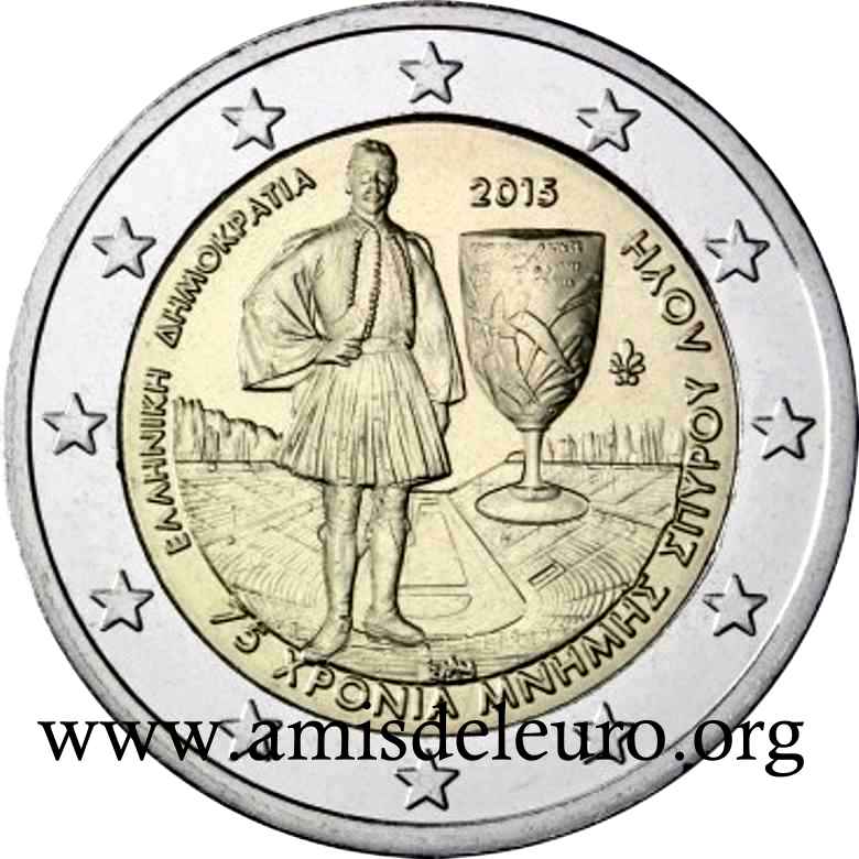 Les 2 euro commémoratives En 2004, la Grèce est le premier pays à émettre une 2 EUR commémorative, à l’occasion des JO d’Athènes. Compte tenu du retard de parution, le Luxembourg a bien failli prendre la première place ! Il faut préciser que pour cette première commémorative, une dérogation avait été rédigée. En effet, il avait été prévu au départ que les pièces commémoratives ne pourraient pas être mises en circulation avant 2008. La raison était qu'il fallait laisser à la population de la zone euro le temps de s'habituer aux faces des différents pays. Mais la monnaie européenne a été très vite adoptée et le thème des JO était tout à fait honorable pour une première commémorative. Après cette première commémorative, le calme plat pour la Grèce, il aura fallu attendre la 2 EUR commune du Traité de Rome de 2007 pour voir la seconde. La Grèce a pour habitude de ne pas faire frapper de 2 EUR normales lorsqu'elle propose des 2 EUR commémoratives, du coup le seul moyen de se les procurer est d'acquérir les coffrets BU dont la cote grimpe rapidement. La Grèce a émis beaucoup de commémoratives non circulantes et des coffrets UNC dont certains contiennent des médailles.