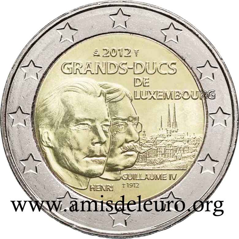 En 2012, le Luxembourg se démarque une nouvelle fois, en étant le premier pays à frapper trois pièces commémoratives de 2 EUR la même année. En effet, le 4 juillet a été voté un amendement autorisant la production de deux pièces commémoratives par an et par pays en plus d'éventuelles émissions communes.