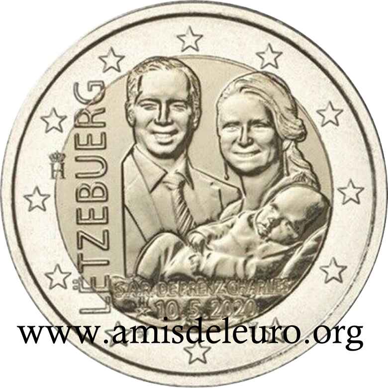 Et la loi qui obligeait de faire figurer l’effigie du grand-duc sur les monnaies circulantes a subi une exception sur la pièce commémorative de 2 EUR de 2020, qui représente le couple grand-ducal héritier avec le petit prince Charles : sur cette pièce, le Grand-Duc Henri se trouver représenté par son monogramme (la lettre « H » surmontée d’une couronne).