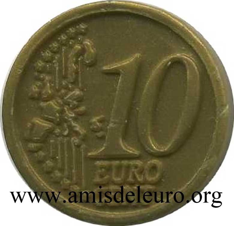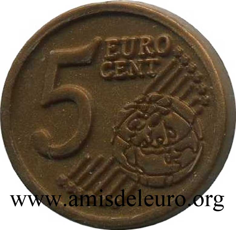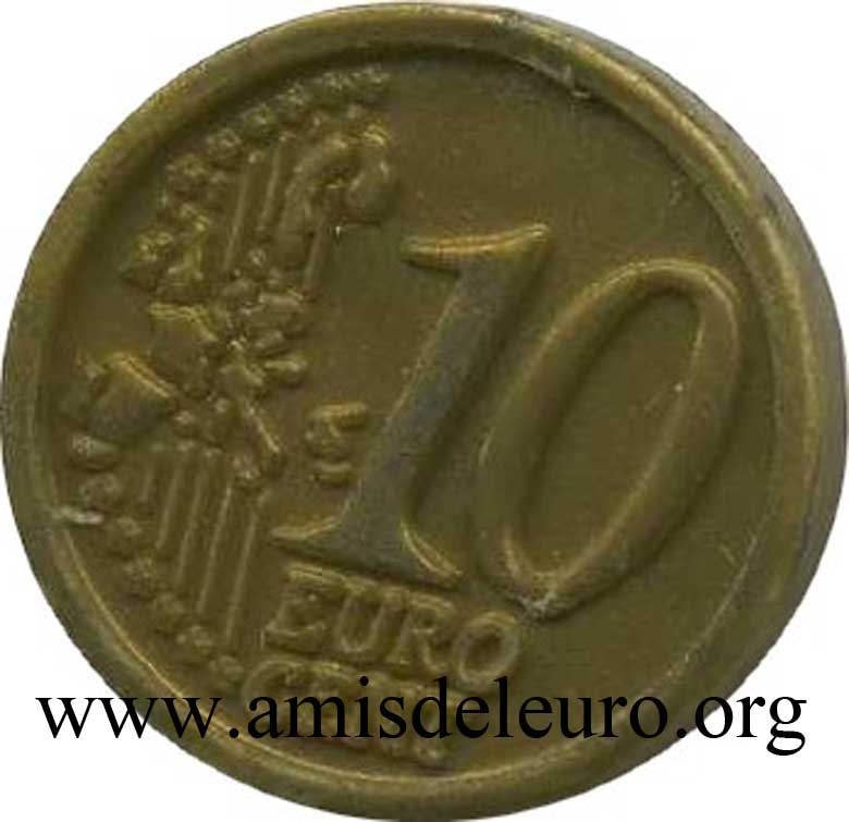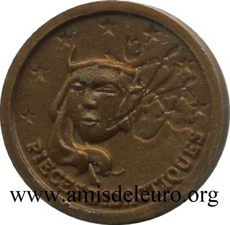 De nombreux euros en plastique ont été fabriqués, certains plus réalistes que d'autres, la plupart ayant servi dans des jeux. Mais il en existe quelques-uns qui ont eu une utilisation intéressante... Il existe tellement d'euros en plastique différents sur le marché que nous n'allons présenter ici que les deux types présentant un intérêt particulier : "Pièces didactiques" euro en plastique : Toutes les séries des pays membres de la zone euro ont probablement été fabriquées, mais seuls les exemplaires en photo ci-contre ont été signalés... Recherche en cours concernant leur utilisation précise (ils ont été utilisés par les formateurs pour préparer les gens au passage à l'euro). Aucune année n'est indiquée sur les pièces cependant on devine qu'elles ont été fabriquées d'après les premières maquettes et non à partir du visuel définitif en ce qui concerne la face commune. Caractéristiques: 5 cent française ; diamètre : 23 mm, épaisseur : légèrement plus épaisse que l'original. Bizarrement la pièce de 10 cent est datée de 2003 alors que celle de 5 cent est datée de 2001, y-a-t-il eu plusieurs années pour chaque modèle ? On remarquera que les faces communes ont été fabriquées à partir du visuel définitif ! Caractéristiques: 10 cent française 2003 ; diamètre : 21 mm, épaisseur : très légèrement plus épaisse que l'original. 5 cent française 2001 ; diamètre : 22 mm, épaisseur : très légèrement plus épaisse que l'original. |