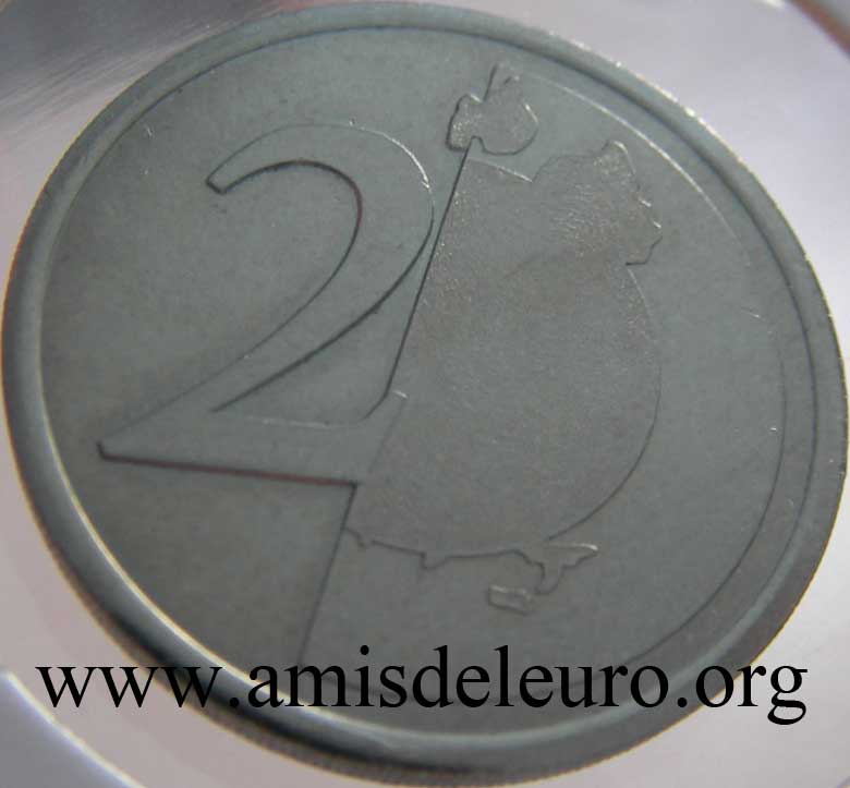 |  | 2 euro | striée sans inscription | médaille Flan non magnétique | 8,24g |  | 8,50 g |  |  | Essai 2 euro monométallique sans insert | striée sans inscription | médaille | 8,20g |  |