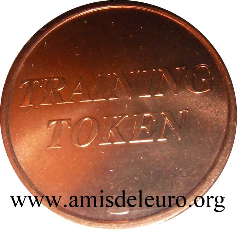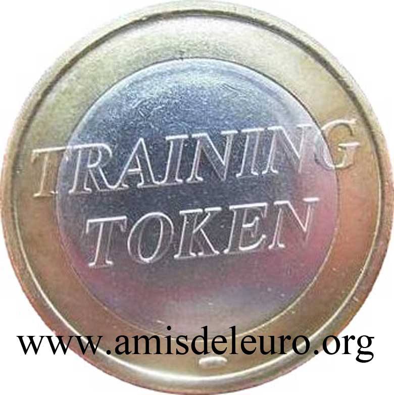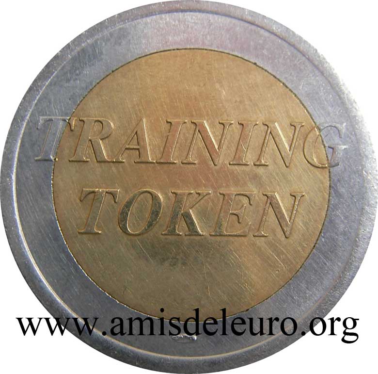 « Training Token » se traduit par « jeton d'entraînement ». La BCE a mis des jetons en euros à la disposition des formateurs s'occupant de personnes aveugles pour les aider à se familiariser avec l'euro. La BCE a demandé à la Monnaie de Paris (à Pessac) de produire 37 000 séries de huit jetons en euro, avant la fabrication des euros, afin qu'ils soient testés par des non-voyants. Il s'agissait aussi de prototypes pour former les malvoyants à l'utilisation de l'euro. Les training tokens ont été frappés entre le 18 novembre 1998 (date de modification technique des 10 cent et 50 cent) et le 8 mai 2001 (date de distribution de ces pièces). Ces pièces ont été distribuées par les États et prêtées pour une durée de quelques mois, puis récupérées à 99% pour être détruites. Si autant de monnaies ont pu être récupérées pour destruction c'est parce que les organismes qui les ont acceptées ont signé une décharge qui les obligeaient à rendre ces jetons à une date limite. Ils sont très légèrement différents des euros actuels (diamètre, poids, ...) afin que ces pièces ne servent pas de monnaies de paiement dans les distributeurs, mais les principales caractéristiques sont très semblables (bimétalliques, tranche, inscriptions, ...) Si certaines pièces sont retrouvées difformées, c'est parce qu'elles ont été récupérées entre l'étape de difformation dans des mâchoires mécaniques et l'étape de fonte. En effet, la Monnaie de Paris difforme systématiquement toutes les pièces avant de les expédier à la refonte de façon à éviter qu'elles ne se retrouvent sur le marché en tant que monnaies de paiement. Ces jetons ayant été récupérés et détruits, sont maintenant rares et recherchés. Les "Training Token"