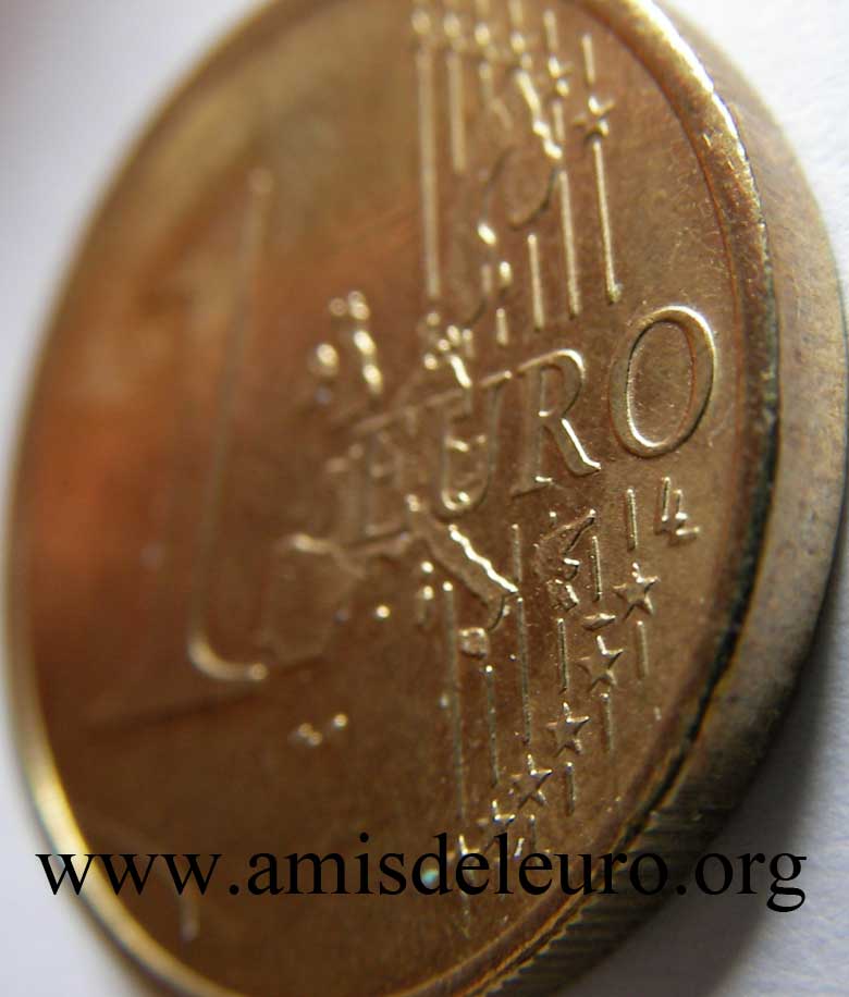 PS : un autre cas existe et peut porter à confusion, la frappe sur un flan étranger. par exemple si le technicien met en place des coins pour frapper des "1 euro" et que c'est un flan de "20 cent" qui arrive, le résultat sera une monométallique. Il est possible de s'en rendre compte en pesant cette pièce et voir la correspondance avec le poids des différents flans d'euro utilisés.