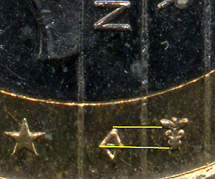 N.B. : la distinction n'est pas très aisée (notamment quand le relief de l'arc est un peu faible). De plus, il faut se méfier des frappes un peu décallées de l'ensemble de la pièce qui donnent l'impression d'un caducée placé plus haut.