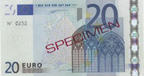 Ces billets sont tout à fait identiques aux billets que l'on peut trouver actuellement mais portent en plus une surcharge marquée "SPECIMEN" et ont un numéro de série supplémentaire sur l'autre face. Ces billets ont été imprimés par les pays les plus avancés dans la préparation de l'impression des billets, à la demande de la BCE, afin de valider la version finale des billets. Ces billets avec tous les signes de sécurités ont aussi normalement été détruits, mais trois séries ont été découvertes. Ces billets restent rarissimes.