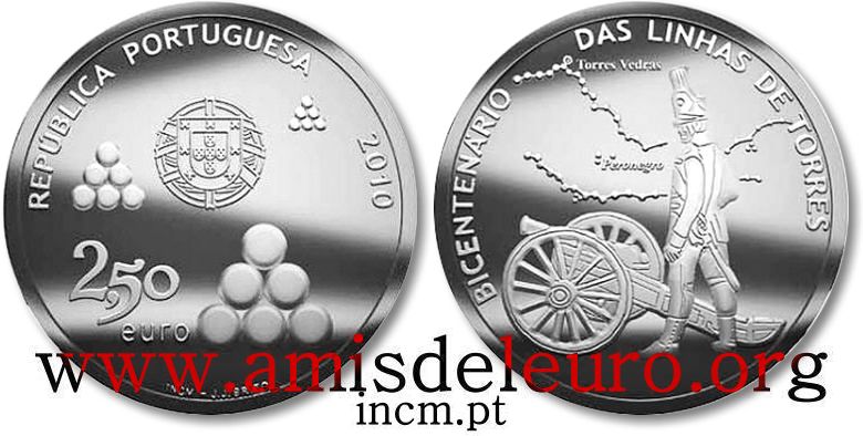 Descriptif avers : L'avers célèbre les 150 ans du chemin de fer entre les villes de Lisbonne et Carregado. Une voie ferrée verticale sépare la pièce en deux. À sa gauche les armoiries de la ville de Lisbonne et à sa droite celles de Carregado. Autour du listel figure l'inscription "150 ANOS DA PRIMEIRA LINHA FERREA LISBOA CARREGADO 1856 - 2006".