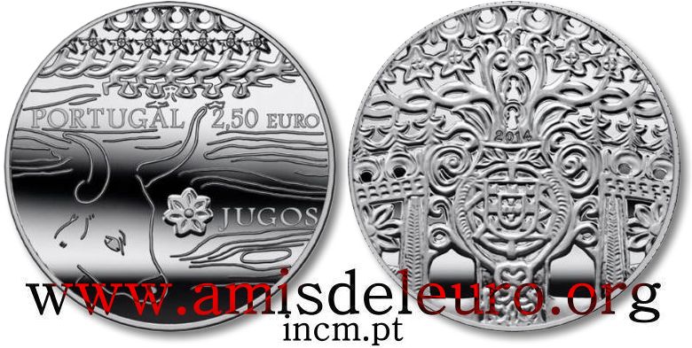 Descriptif avers : A l’occasion de l’organisation de l’Euro 2004 de football au Portugal, le thème de cette pièce est « le football est une fête » (« Futebol é Festa »). De nombreux fanions de différentes tailles sont représentés sur l’avers ainsi que le logo officiel de l’Euro 2004.