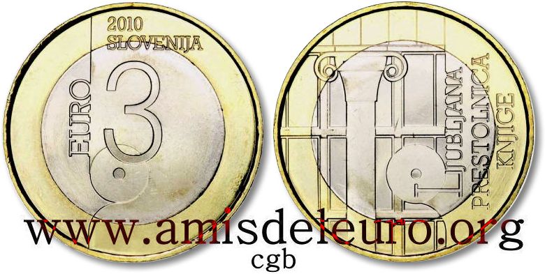 Concepteur : Gorazd U?akar 25.75 mm - 8.5gr. - Cupro-Nickel Création : JO EU C311/14 du 19/12/2010 - Sortie mai 2010 Tranche : cannelures fines et, par dessus, SLOVENIJA Cette pièce existe en tranche A et en tranche B