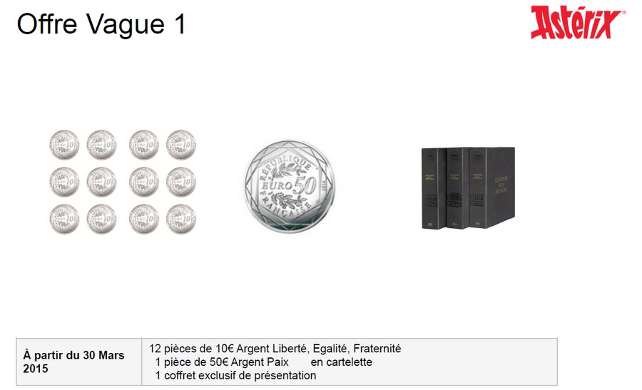 La 50 € argent "paix" ainsi que la 500 € or "respublica"seront présentées sous forme de "cartelette".