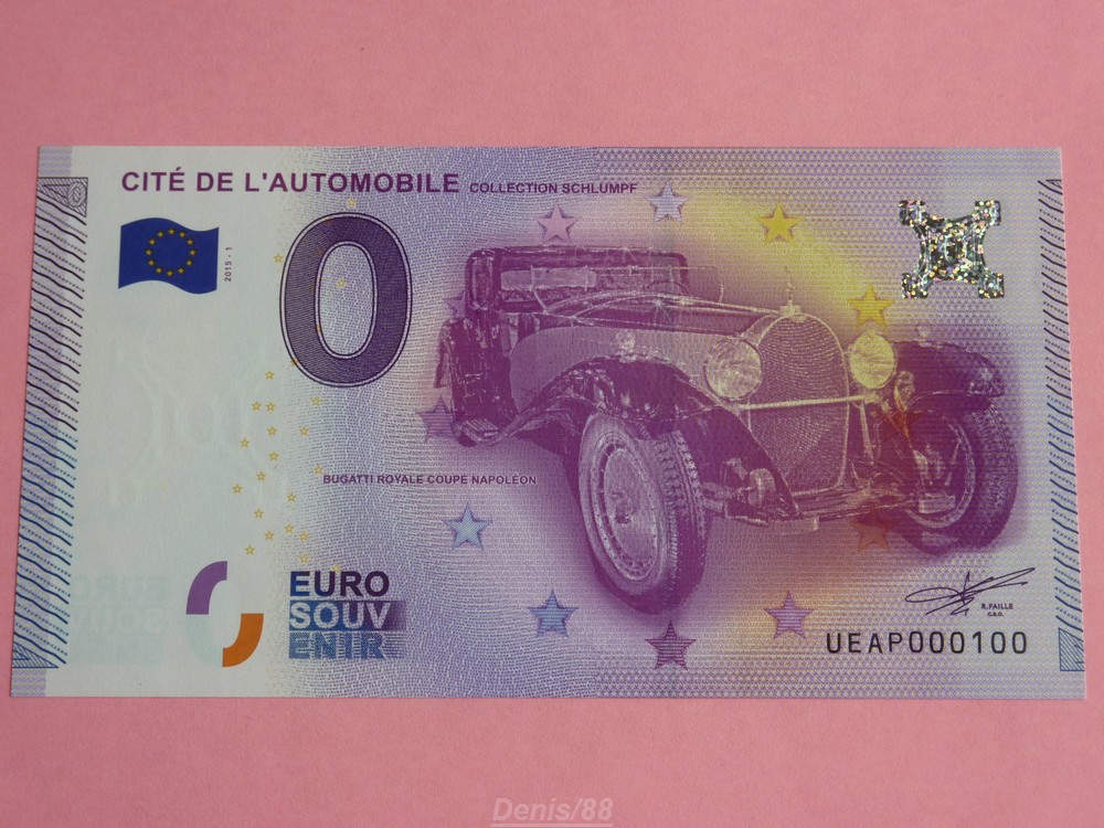 Inscription sur le billet : CITÉ DE L’AUTOMOBILE COLLECTION SCHLUMPF