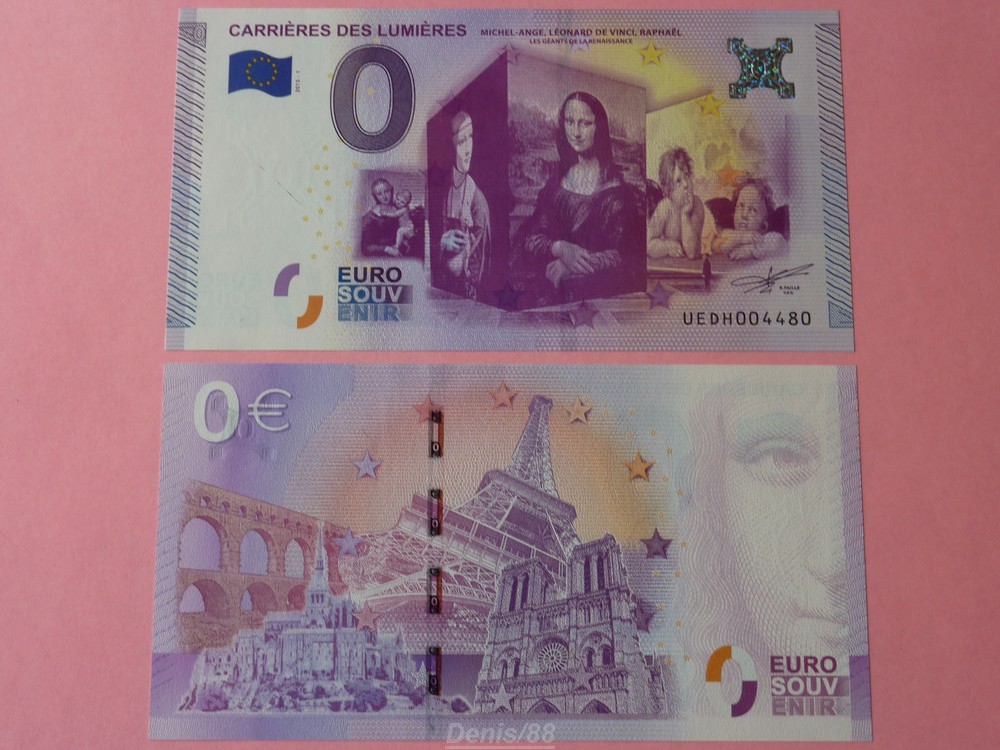 Inscription sur le billet : CARRIÈRES DE LUMIÈRES MICHEL-ANGE, LÉONARD DE VINCI, RAPHAËL LES GÉANTS DE LA RENAISSANCE