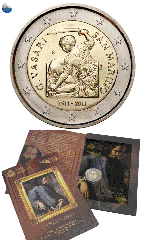 L’AASFN présente le bliter qui contiendra la pièce de 2 euro commémorative 2011 de Saint-Marin sur le thème du 500ème anniversaire de la naissance de Giorgio Vasati, il est né le 30 juillet 1511 à Arezzo, et mort le 27 juin 1574 à Florence, C'était un peintre, un architecte et un écrivain italien auteur des Vite, premier recueil d'histoire de l'Art.
