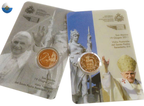 A l’occasion de la visite du Pape Benoit XVI à Saint-Marin le 19 juin 2011, l’AASFN éditera une coincard commémorative qui contiendra la pièce de 2 euro « normale » au millésime 2011.