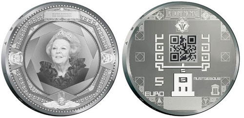 A l’occasion de son 100e anniversaire, la monnaie royale Néerlandaise va produire des euros comportant sur une de leurs faces un QR code.