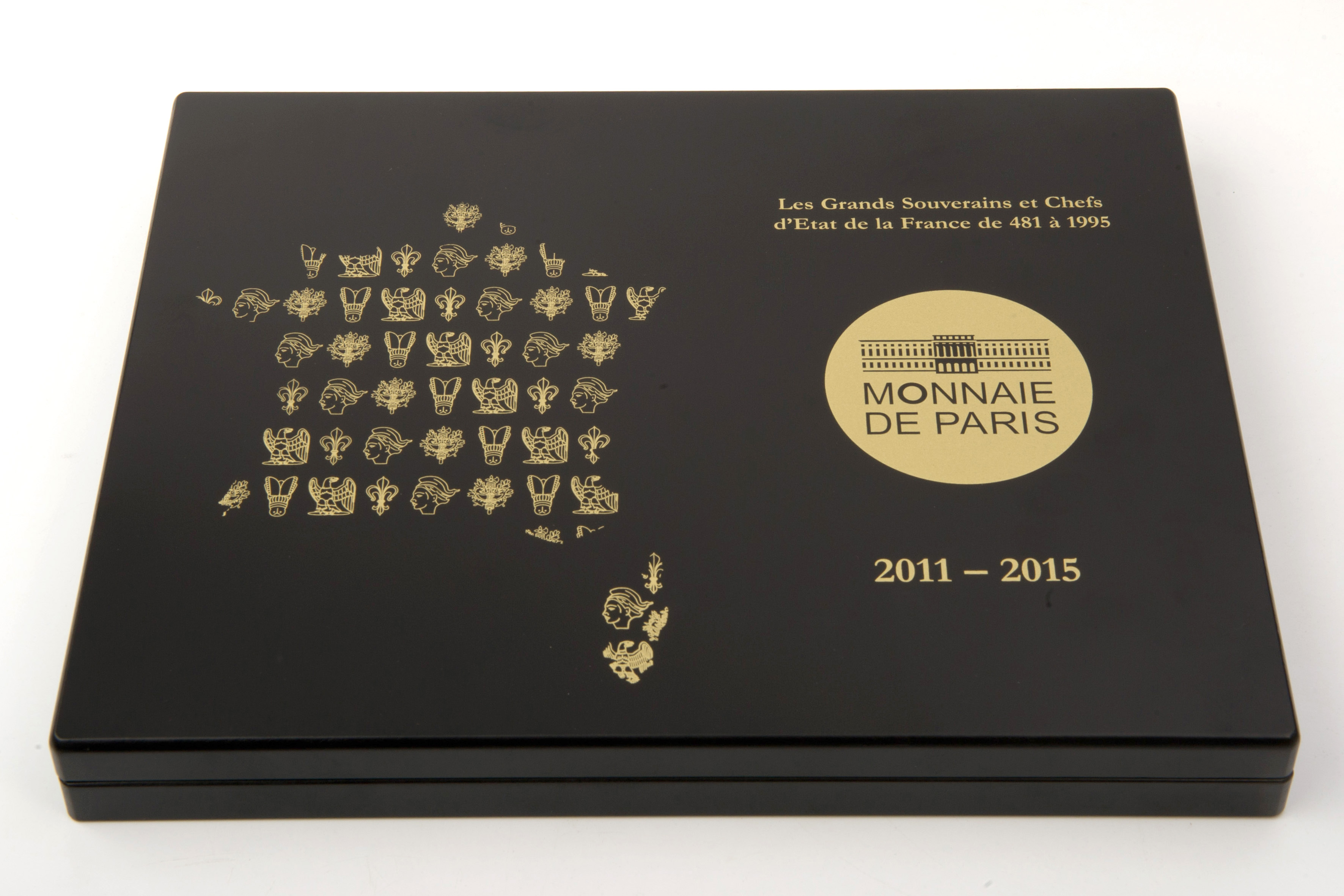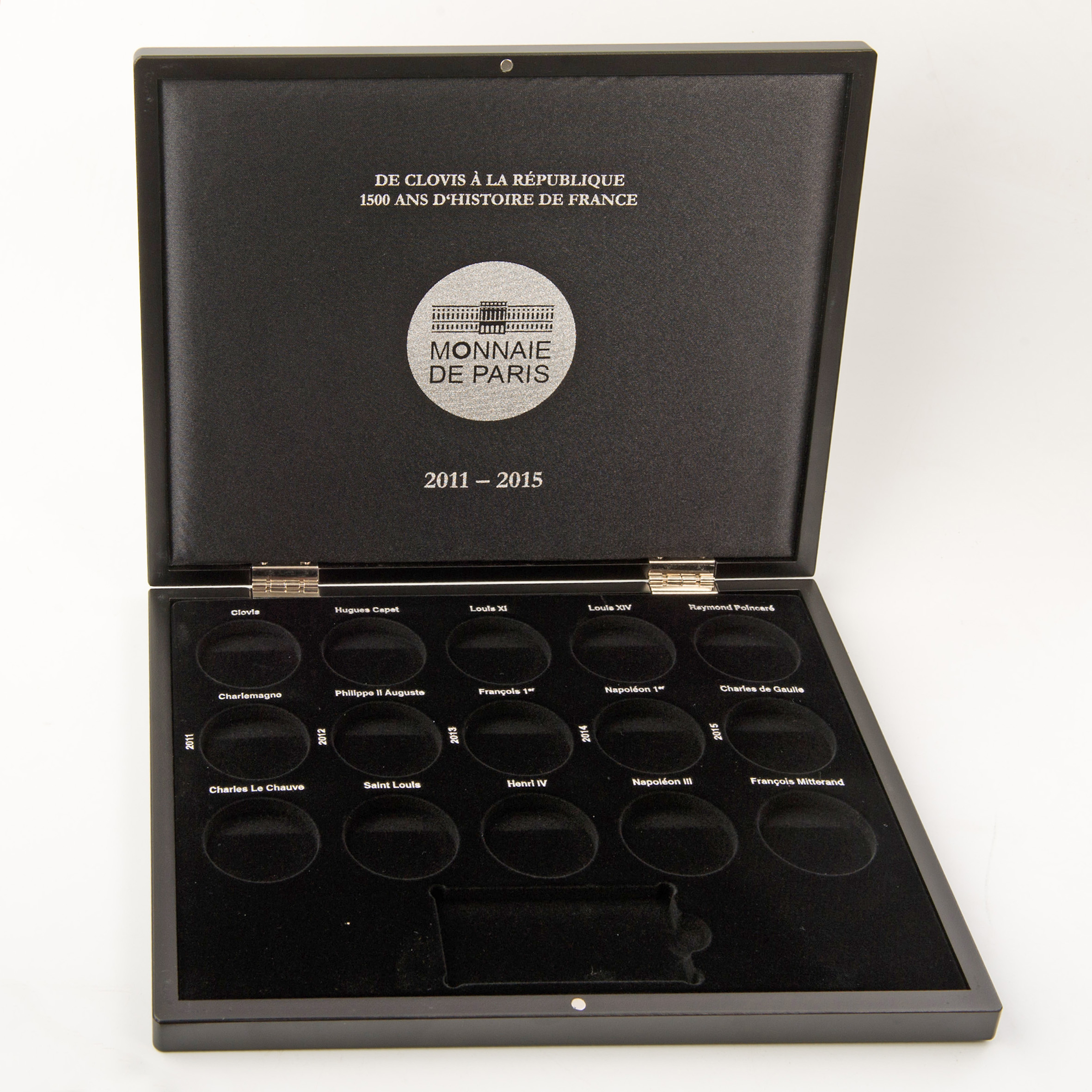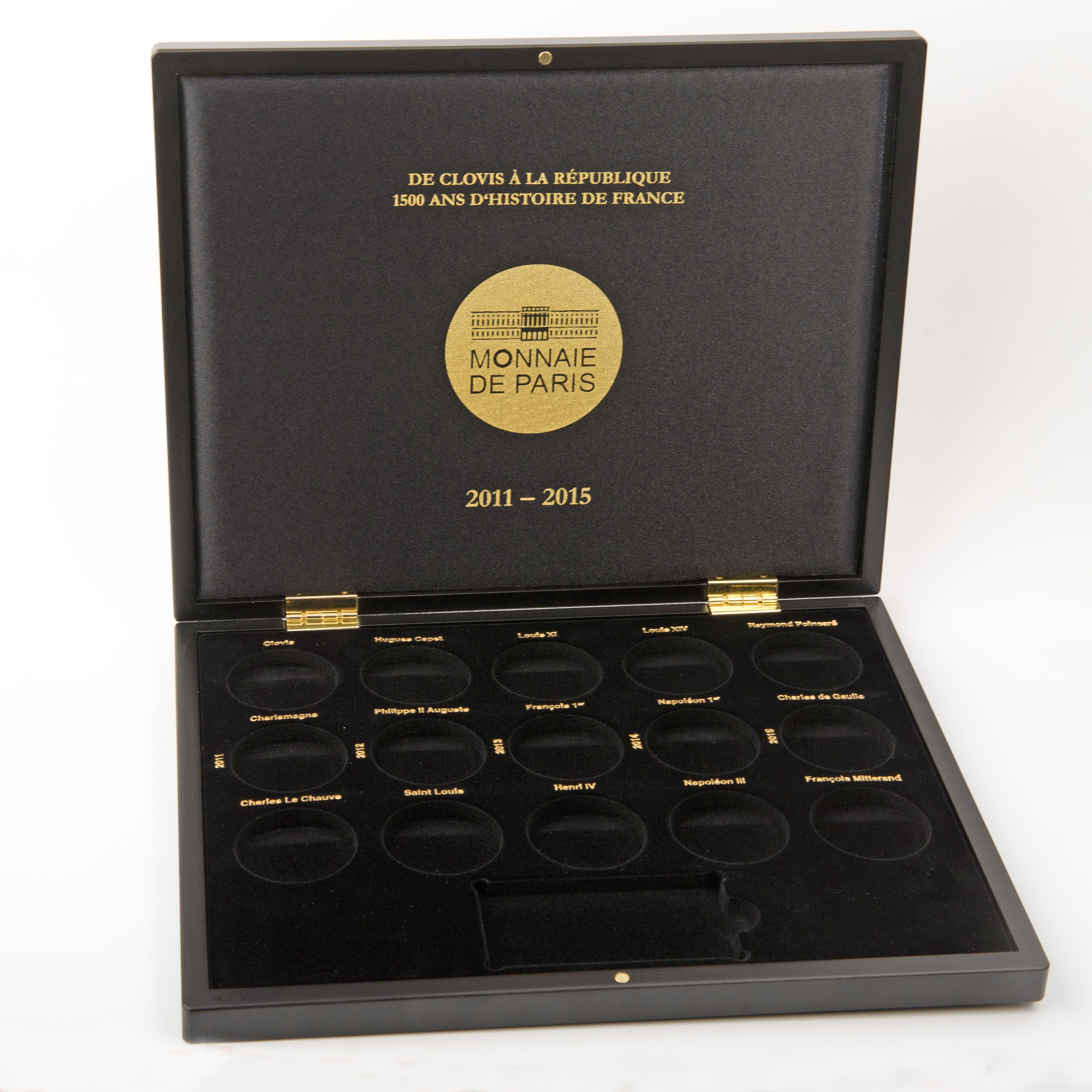 La Monnaie de Paris émettra fin novembre un coffret, pour ranger la série de pièces 10 argents, et un autre, pour ranger les pièces de 50 euros or, sur le thème des 1500 ans d'Histoire de France.