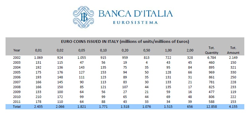 Ces données ne concernent que les pièces de la série divisionnaire (hors 2€ commémoratives).