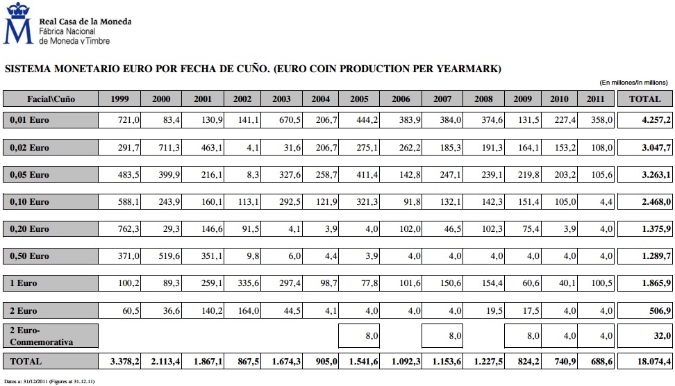 Ces chiffres concernent les euros de circulation (y compris 2€ commémoratives).