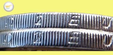 Deux de nos adhérents, Serge (par ailleurs éditeur du blog 3Bun) et Denis, ont constaté qu'il existait vraisemblablement une variété de tranche sur la 2€ commémorative chypriote 2012 " 10 ans de l'euro".