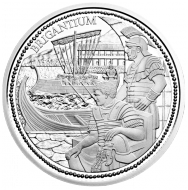 Seulement découvert et fouillé il y a 40 ans, l'ancien port peut être vu en arrière-plan du revers de cette monnaie.