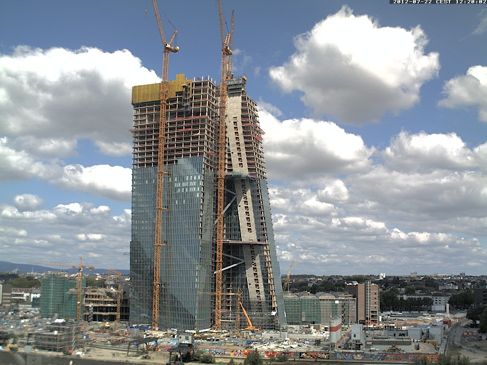 En pleine crise de l'euro, les travaux de la future Tour de la BCE à Francfort sur le Main ne semblent pas ralentir.