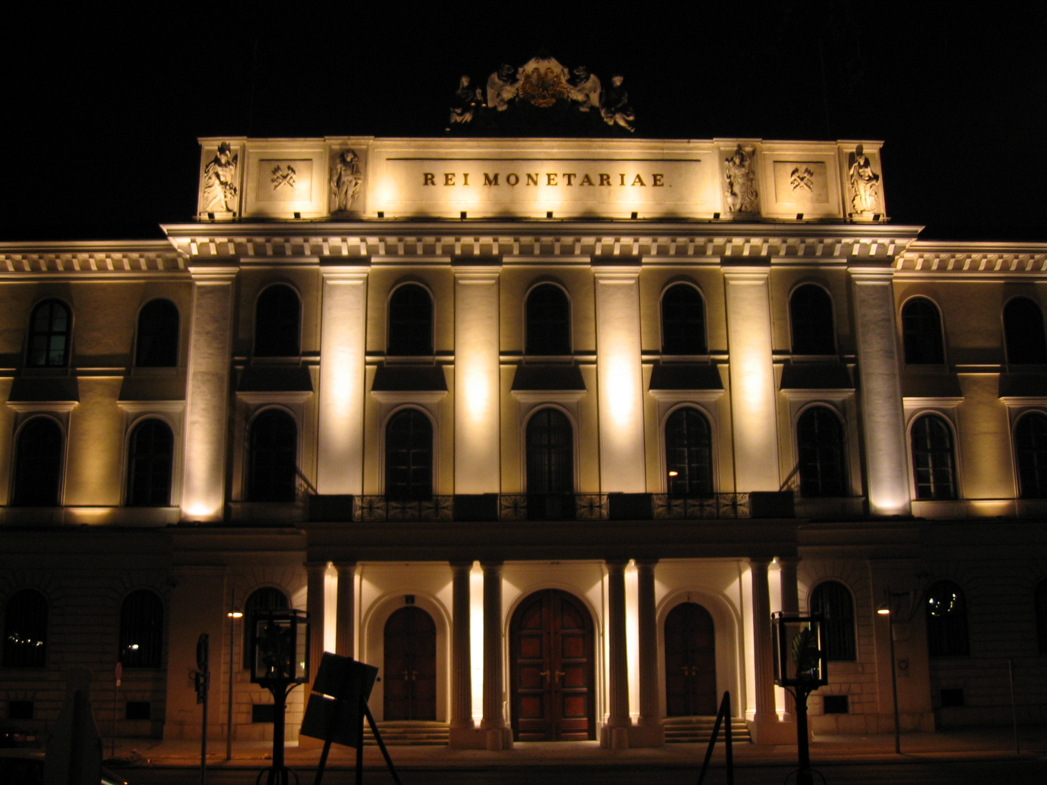 Façade de la Monnaie d'Autriche de nuit