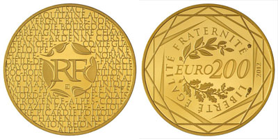 200 euros or euros des régions - Monnaie de Paris 2012