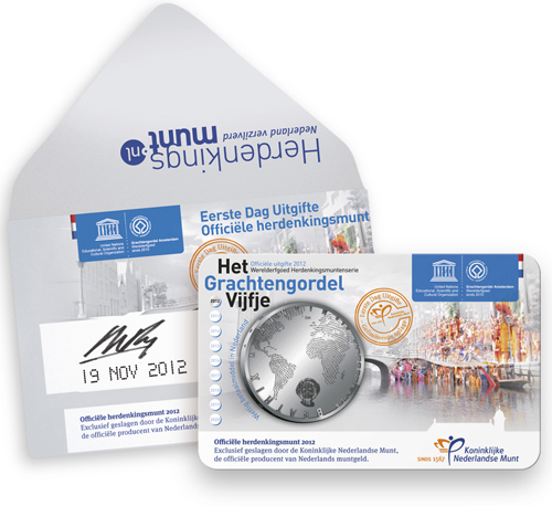 Le 13 novembre 2012 marque le premier jour d'émission de la pièce sur les canaux d'Amsterdam