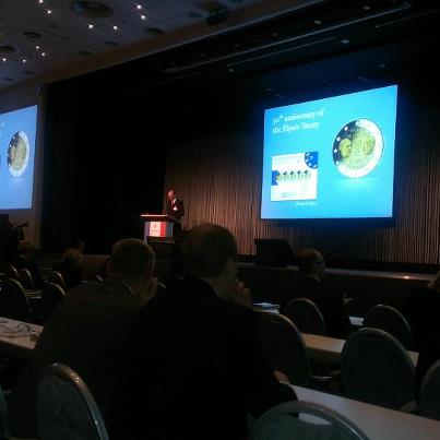 Présentation de la pièce de 2€ commémorant les 50 ans du Traité de l'Elysée, émise en 2013 par la Monnaie de Paris, lors du Muenzen Forum du WMF 2013.