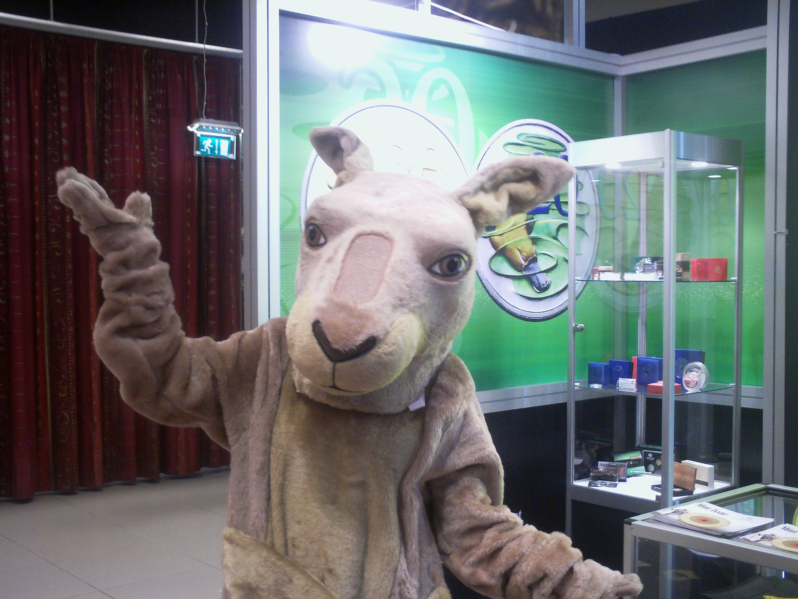 Pour les plus jeunes visiteurs du WMF, le Mint d'Australie a prévu un acceuil par sa mascotte: un kangourou.