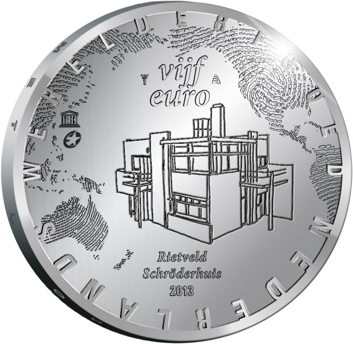 Sortie par la KNM d'une pièce de 5 Euro Maison Schröder de Rietveld 2013