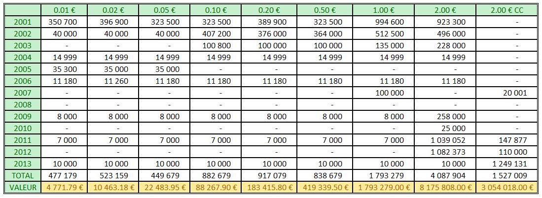 Tirages Effectifs Monaco 2001 à 2013
