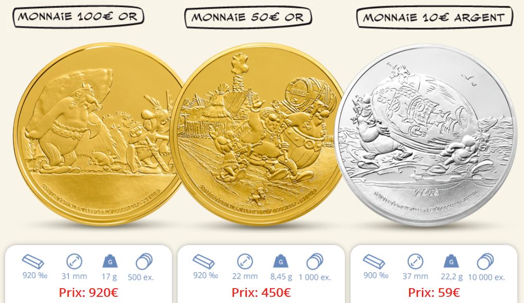 Série Astérix 2013 10 € Argent, 50 et 100 € Or