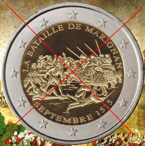 D'après Monnaie magazine, abandon du thème de la 2 € commémorative 2015 française sur Marignan