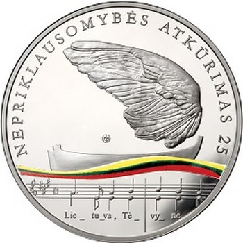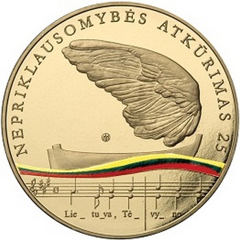 Sortie ce jour de la 5 € et 20 € dédiée au 25e anniversaire de la restauration de l'indépendance de la Lituanie, le 11 mars 1990 (de la série "La route de la Lituanie à l'indépendance").