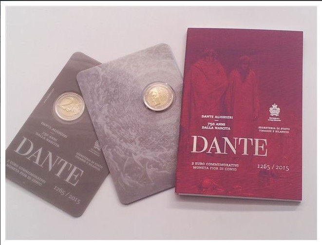 Sortie officielle aujourd'hui de la 2 € dédiée au 750ème Anniversaire de la Naissance de Dante Alighieri.