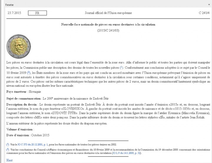 Plus de détails sur le forum :[Commémo] 10€ 2015 Ľudovít Štúr