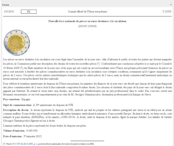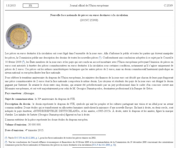 Le texte officiel et les commentaires :Re: [Commémo] 2€ 2015 commune