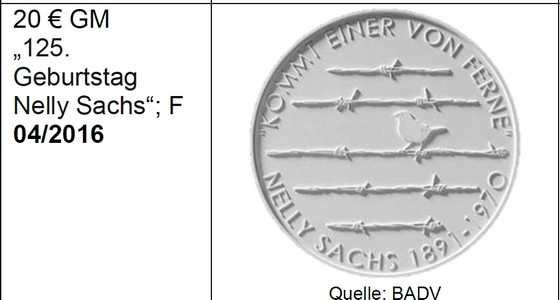 [commémo] 2016 20 € 125 ans Nelly Sachs