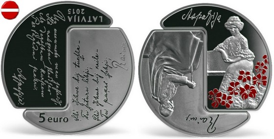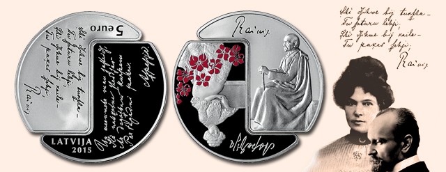 La pièce de collection de 5 € en argent consacrée au 150ème anniversaire de Raina et Aspazija est sortie.