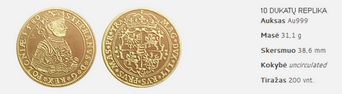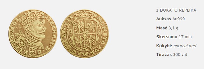La Lituanie émet des pièces en or reproduisant d'anciennes pièces en Ducats.
